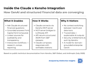 Alongside it, S&P Global’s Kensho Labs announced a technical integration with Claude that reveals what this means in practice.